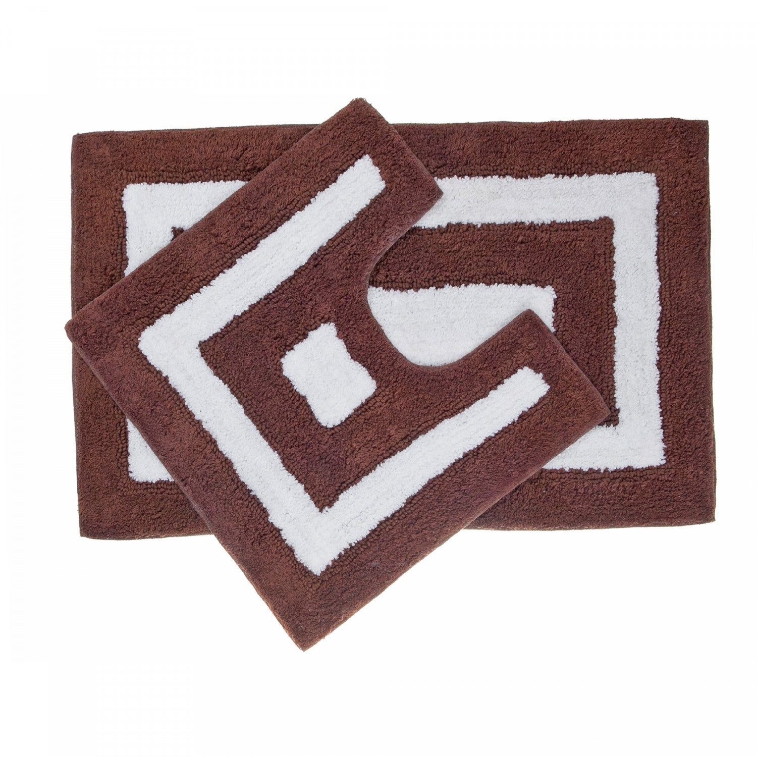 2pc Cotton Bathmat Set White/Chocolate Border Bathmat
