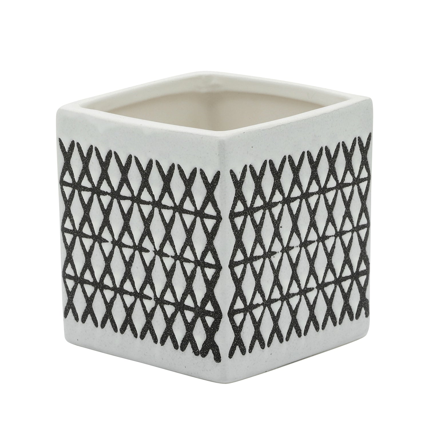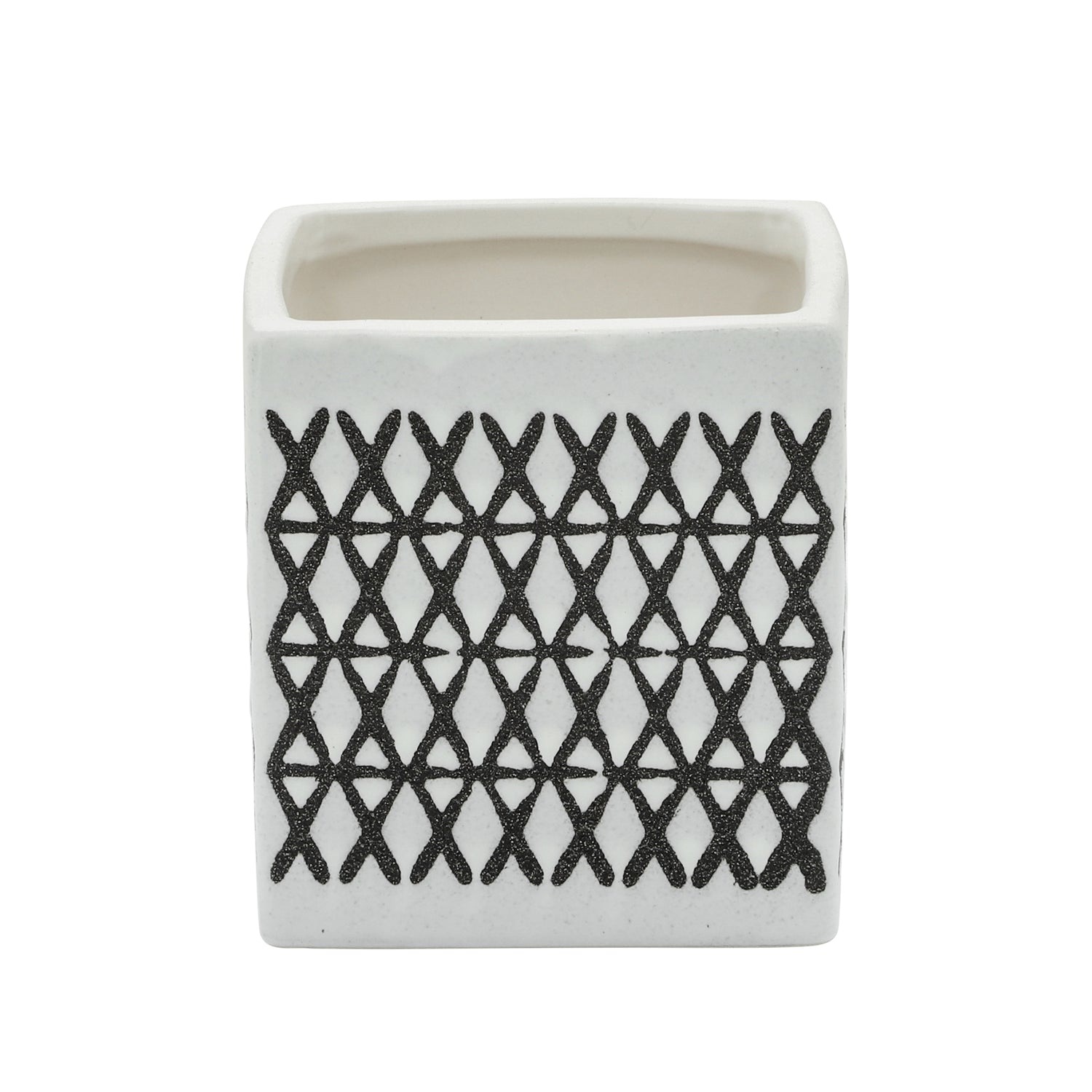 Ceramic Square 4" Criss-Cross Pattern Pen Holder - Black and White
