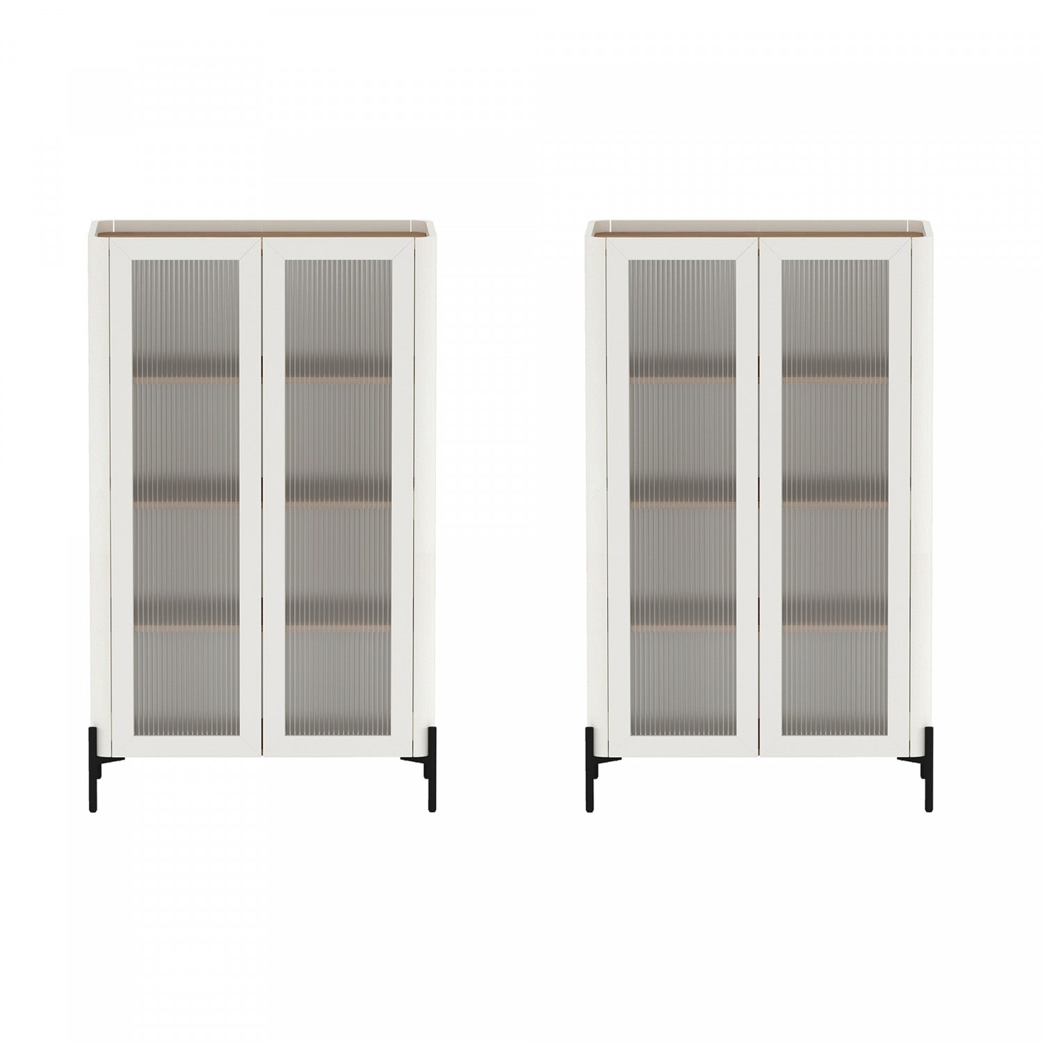 Abbey Modern 32" Tempered Glass Bookcase Cabinet in Maple and Off White (4-Shelf) - Set of 2
