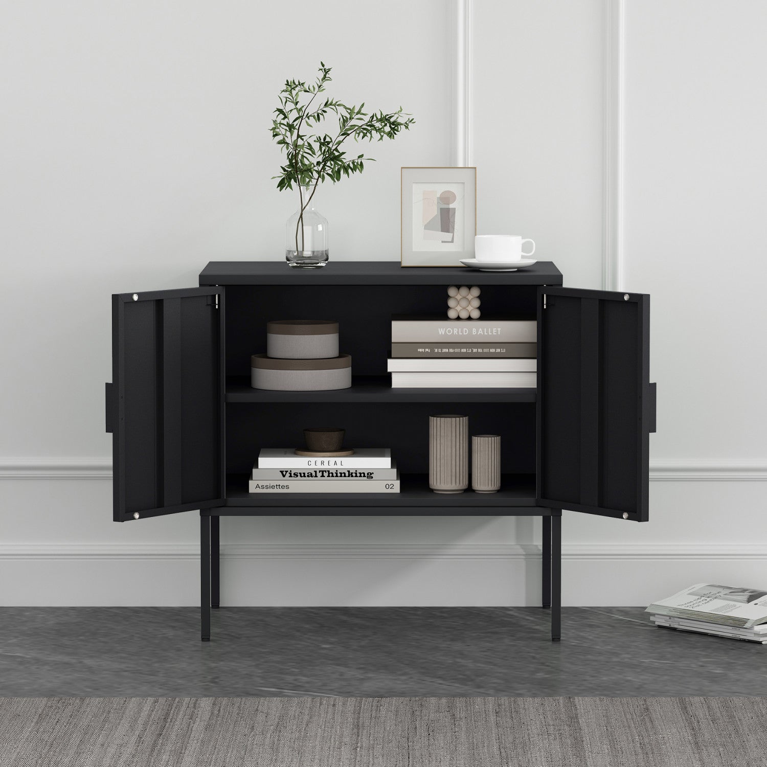 Ava Modern 24" Metal Accent Cabinet in Black