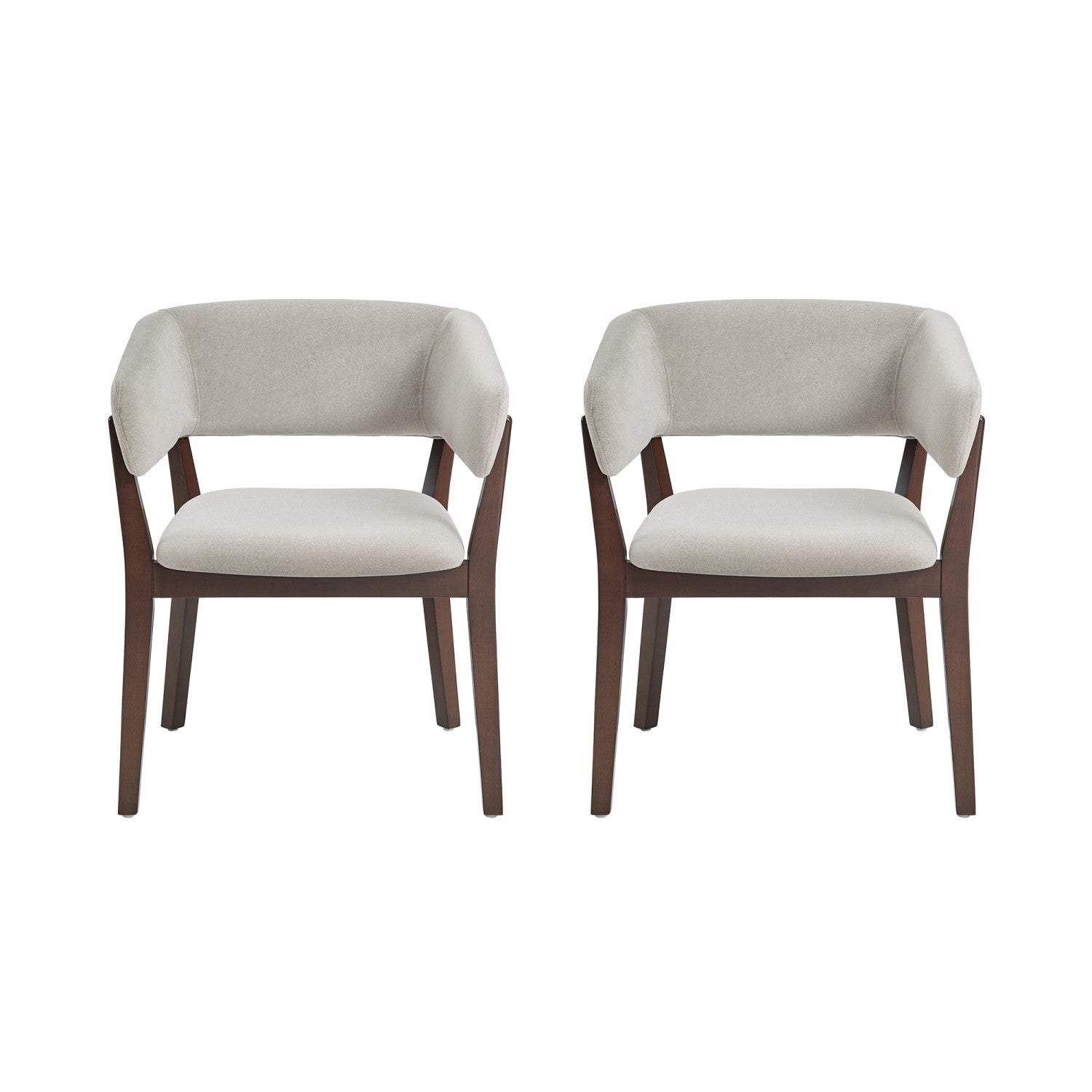 Blake Modern Faux Mohair Wood Armchair in Greige - Set of 2 Dining Chair