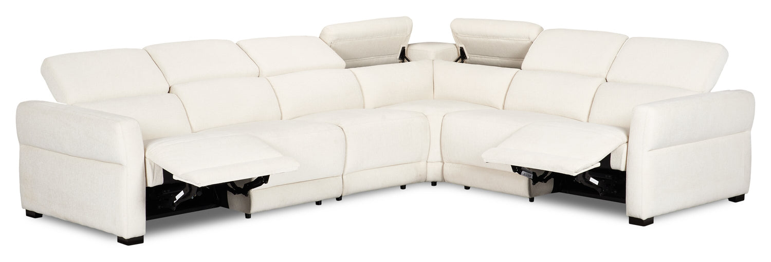 Cindy Crawford Home Aspen 5-Piece Power Reclining Sectional with Adjustable Headrests and USB Port - Alabaster