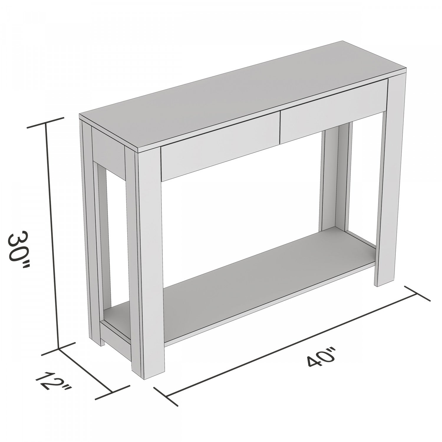 Width: 40" (101.6 cm) Height: 30" (76.2 cm) Depth: 12" (30.5 cm)