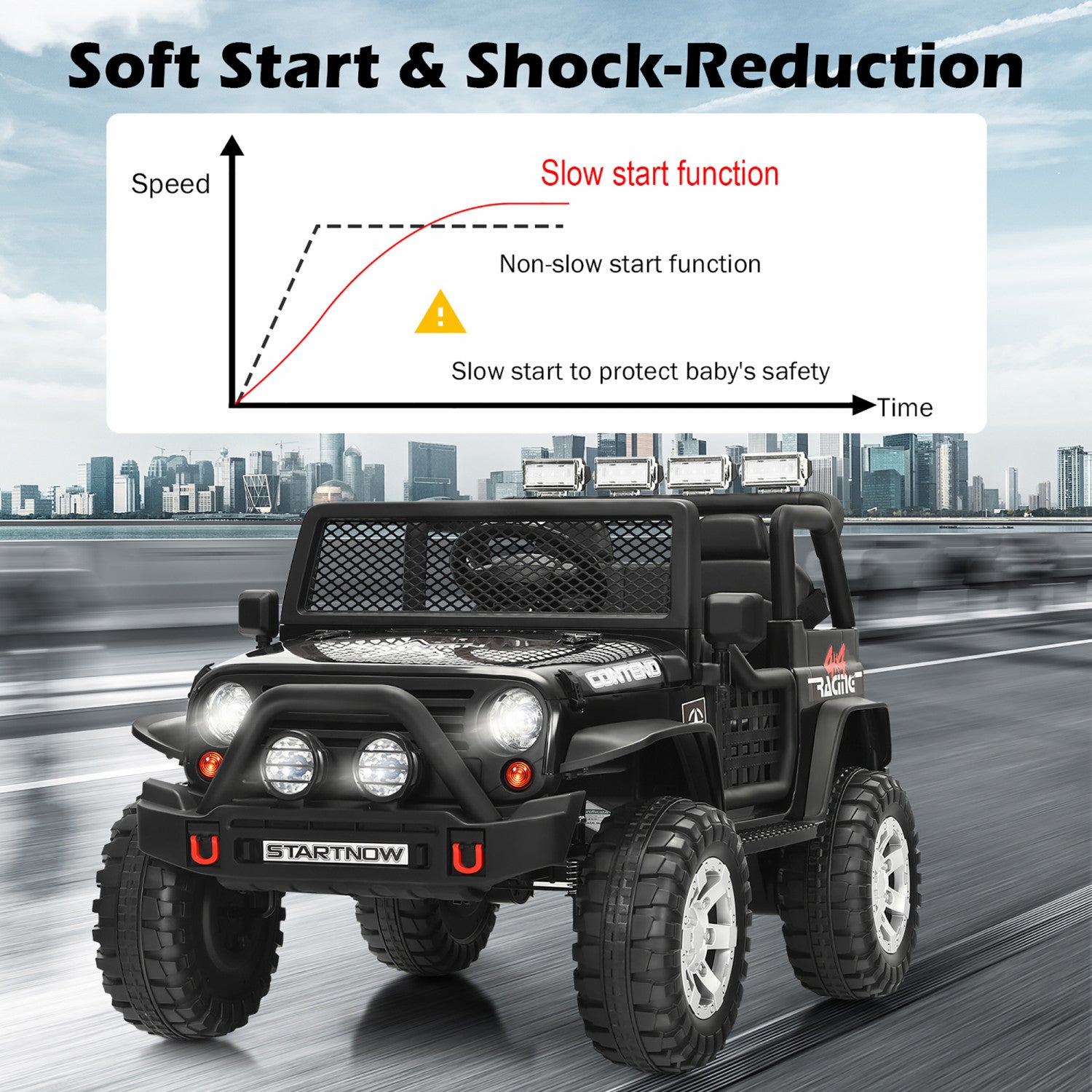 Costway 12v Kids Ride On Truck Remote Control Electric Car W/lights&music Black