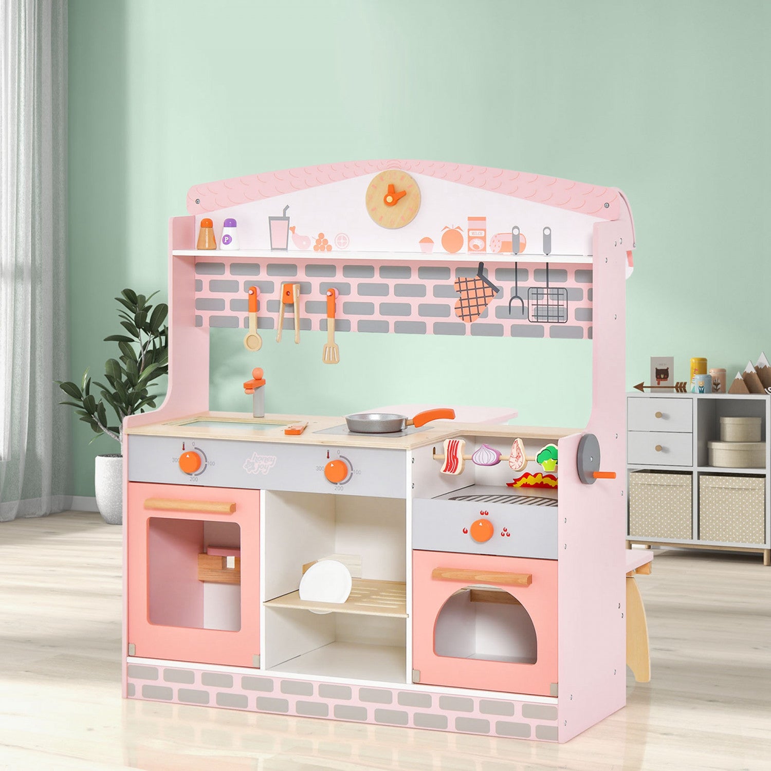 Costway 2 In 1 Kids Play Kitchen & Restaurant Double-sided Pretend Playset With Canopy