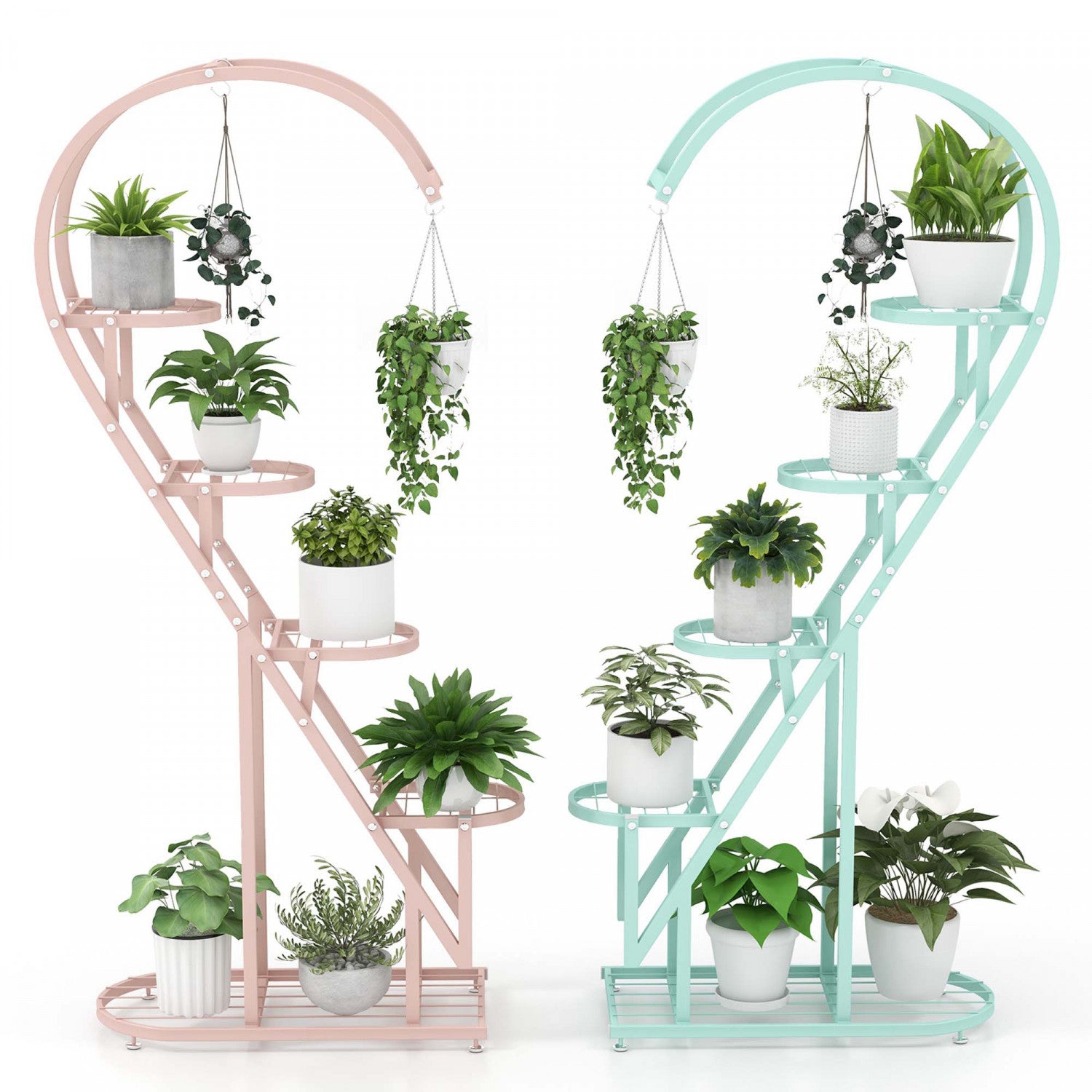Costway 5 Tier Metal Plant Stand Heart-shaped Shelf With Hanging Hook For Multiple Plants Pink & Blue