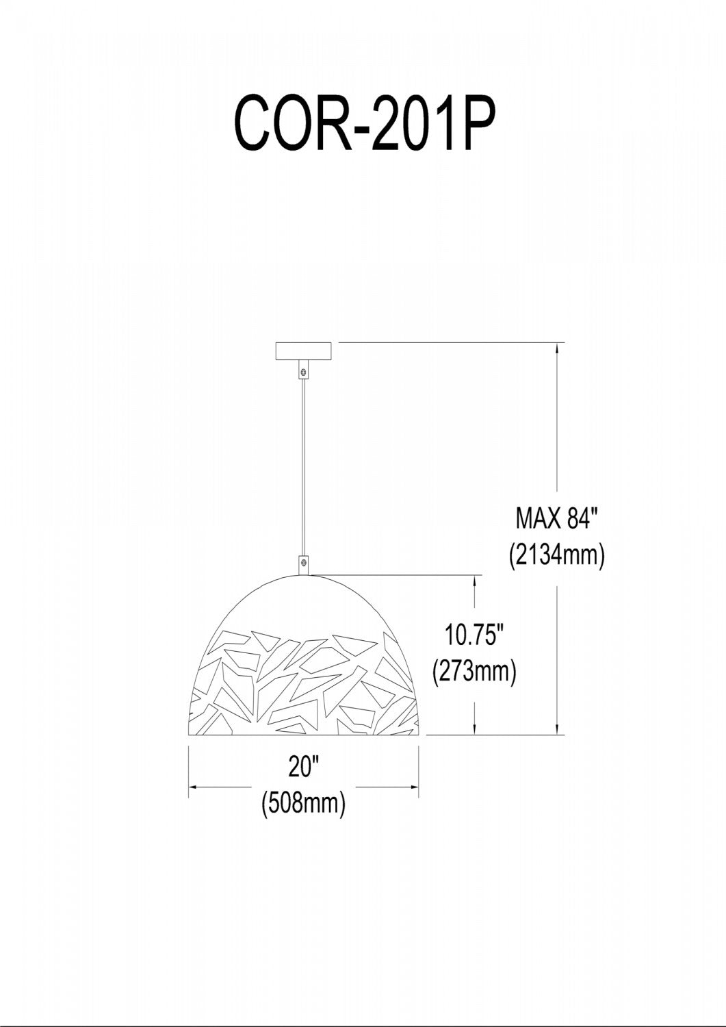 Dainolite Coral 1 Light Pendant 20" Dia Matte Black Finish Lamp