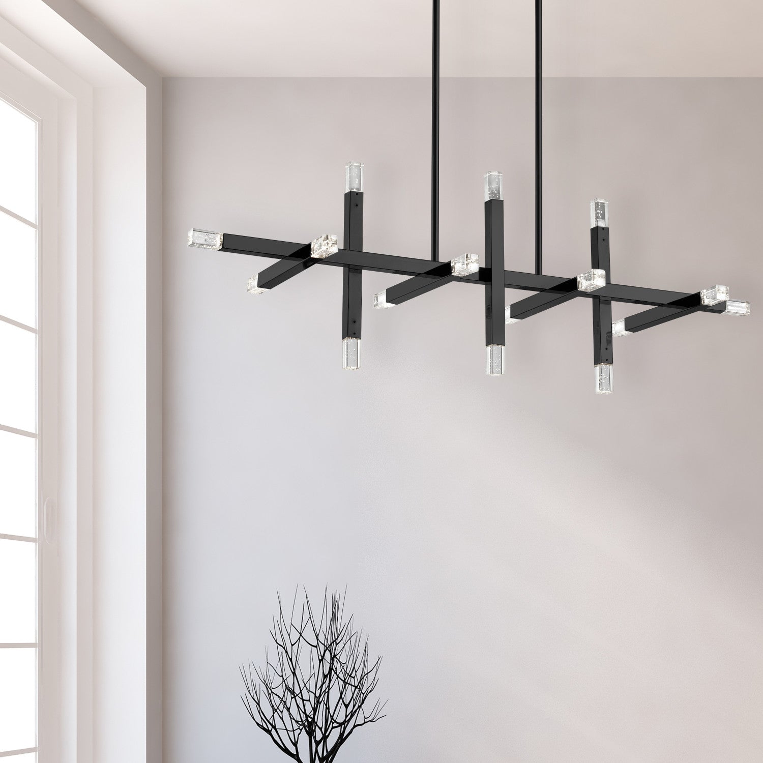Dainolite Francesca Horizontal Chandelier 48w Matte Black Acrylic Diffuser Lamp