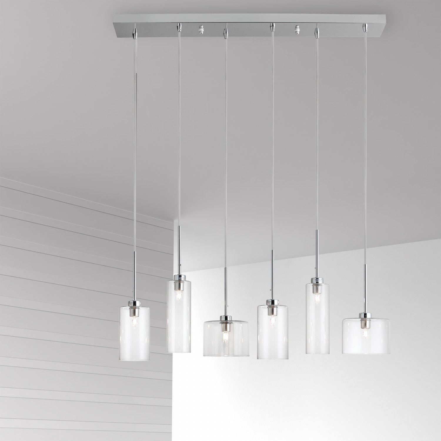 Dainolite Industrial Chic 6 Light Horizontal Pendant Polished Chrome Finish Clear Glass Lamp