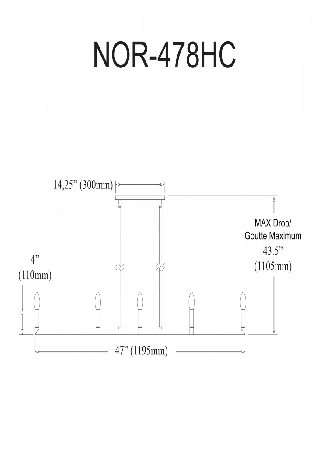 Dainolite Nora 8 Light Horizontal Chandelier Matte Black Lamp
