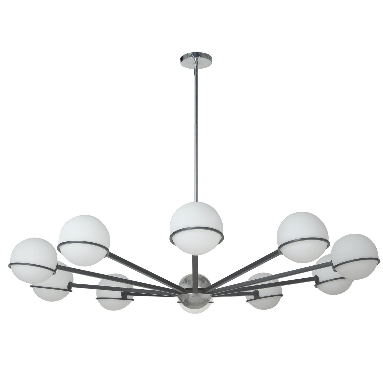 Dainolite Sofia 10 Light Chandelier Matte Black/Polished Chrome White Opal Glass Lamp