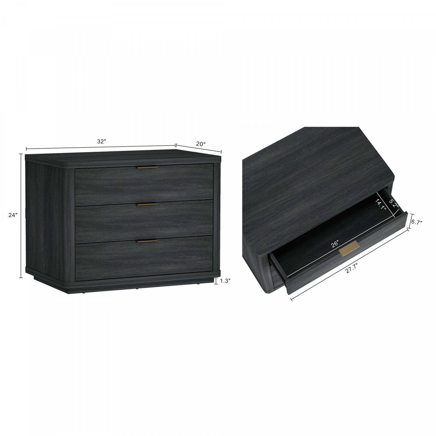 Evelyn Modern 32" Nightstand in Charcoal Gray (3-Drawer)