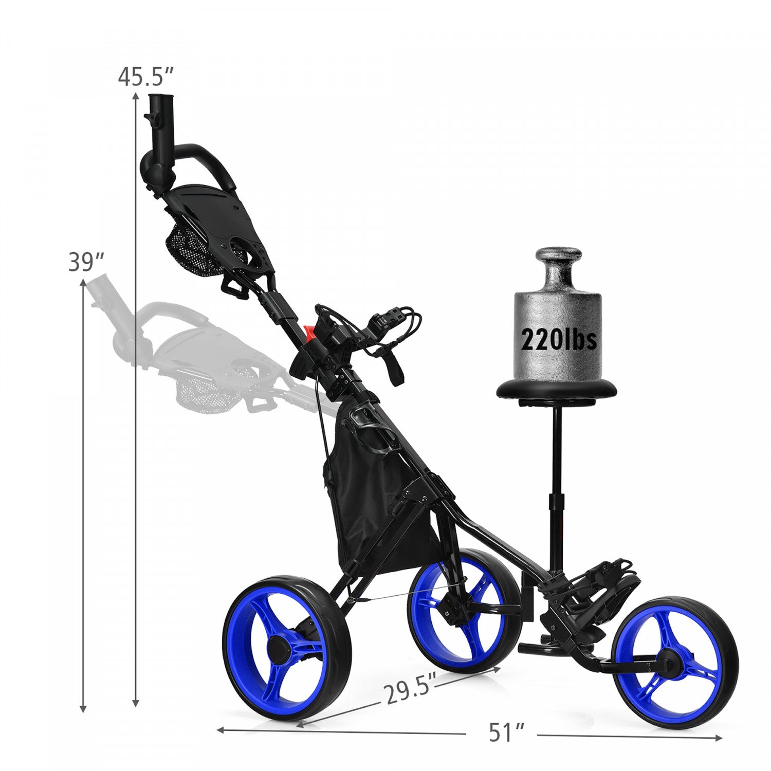 Goplus Folding 3 Wheels Golf Push Cart W/seat Scoreboard Adjustable Handle Blue