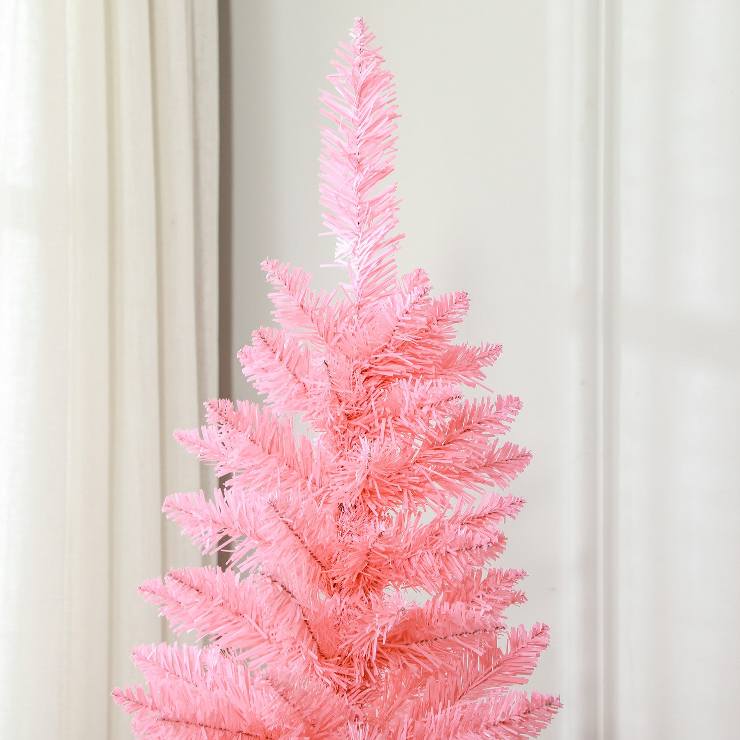 Homcom 6ft Tall Pencil Artificial Christmas Tree With Steel Base, Pink
