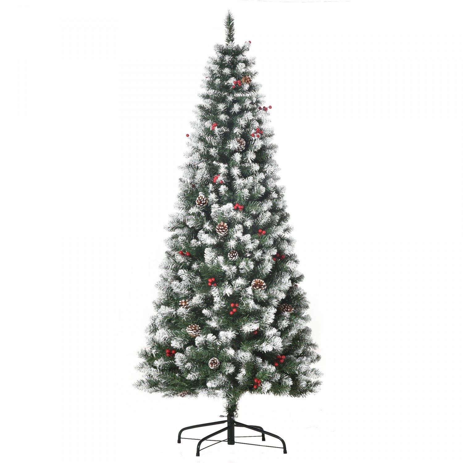 Homcom Flocked Pencil Christmas Tree With Red Berries, Pine Cones, Green