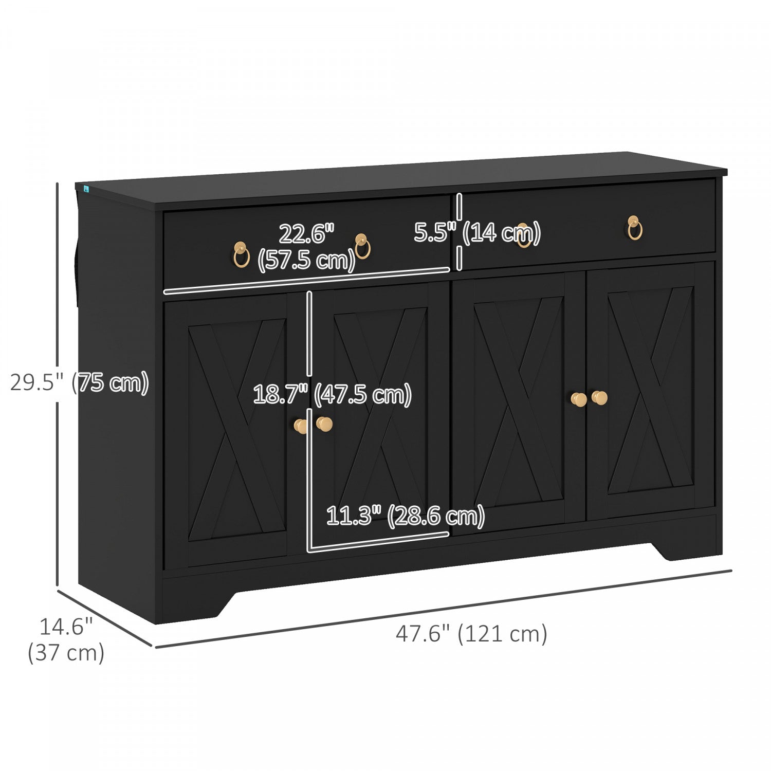 HOMCOM Sideboard Buffet Cabinet, Kitchen Cabinet with Drawers, Black