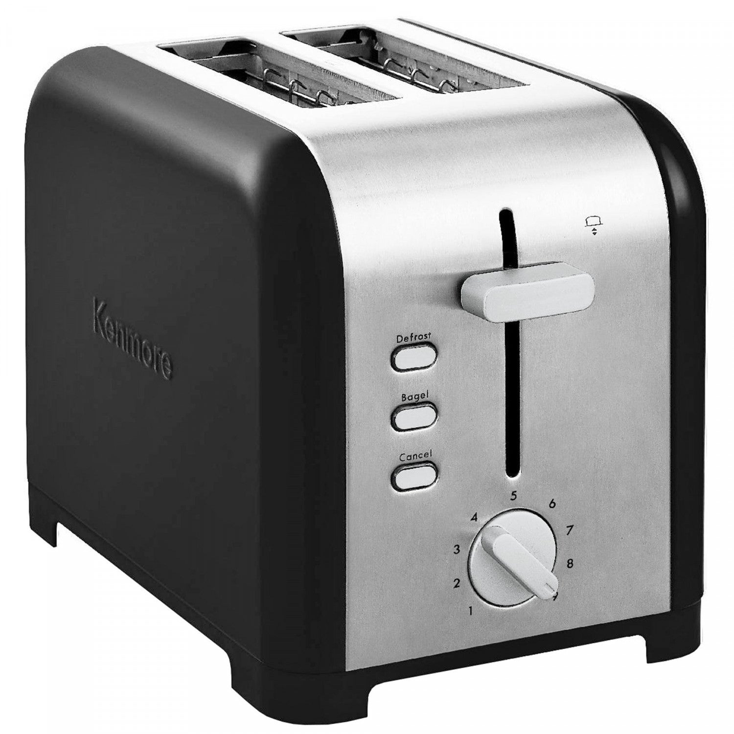 Toast or defrost your way to a delicious healthy breakfast with this 2-slice stainless steel toaster from Kenmore. With its extra-wide slots and self-adjusting bread guides, this toaster accommodates everything from English muffins to Texas toast, and the easy-to-use numbered dial offers 9 shade settings so you have plenty of options to suit your family's individual taste. Built-in bagel and defrost functions let you make the perfect bagel halves with crispy tops and soft chewy bottoms or toast straight from frozen without undercooking or burning. The attractive stainless steel housing easily wipes clean and the BPA-free crumb tray is completely removable for hassle-free cleanup. Best of all, Kenmore products are backed by a 2 year limited warranty for your peace of mind.