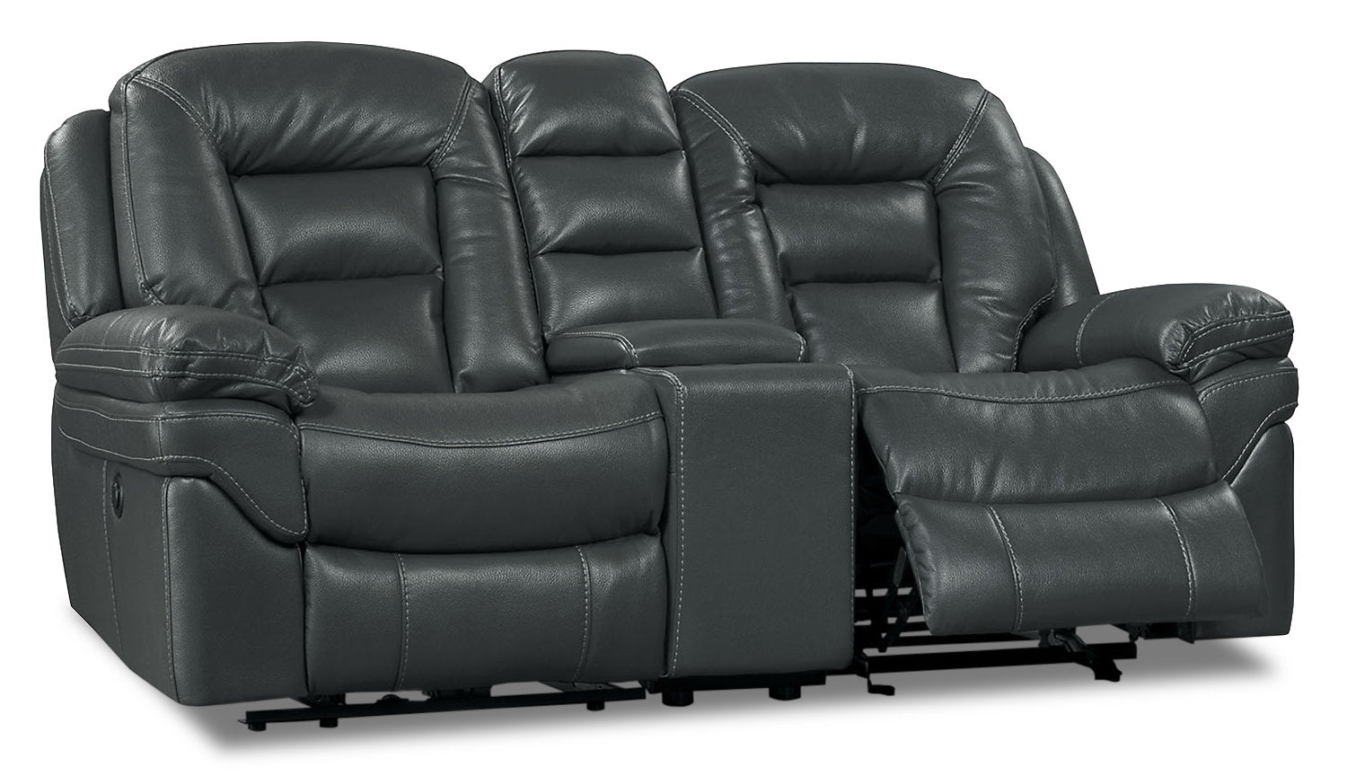 Leo 78" Leather-Look Fabric Power Reclining Loveseat with Storage Console - Grey