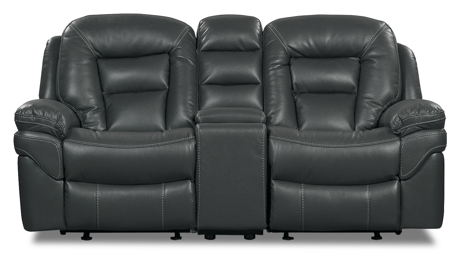 Ryker 72.24" Leather-Look Reclining Loveseat with Storage Console - Grey