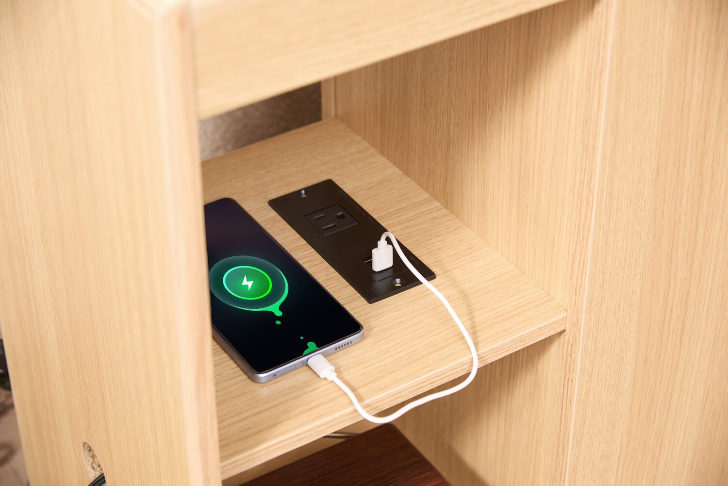 Byron 15.5" Accent Table with Built-In USB and Qi Charging - Red Cocoa and Black
