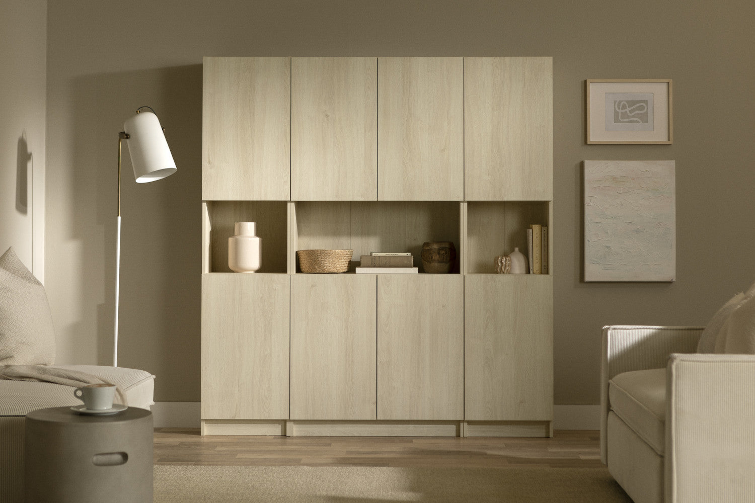 A flexible storage solution. The living room is a space where we spend a lot of time, so it's essential to design it well to get the most out of it. Choose overhead storage, both open and closed, with this 2-door bookcase. Equipped with 3 removable shelves and a fixed shelf in the center, it multiplies storage in the room while sporting a clean contemporary style. Creating an uncluttered decor is child’s play! The 2 handleless doors open with a push-to-open mechanism. Young and old alike will have no trouble accessing the items stored inside. Whether you need to store toys, books or diy materials, this narrow shelf will meet your ever-changing needs. Its minimalist appearance will blend in with any decor.