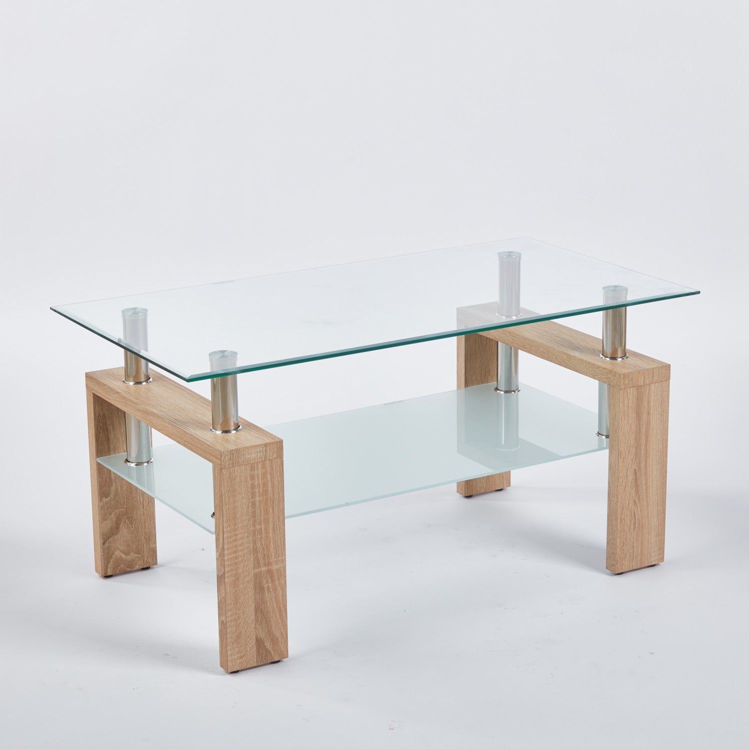 Lucius Modern Geometric Design Tempered Glass Coffee Tablewith Metal Frame and Clear Glass,Natural