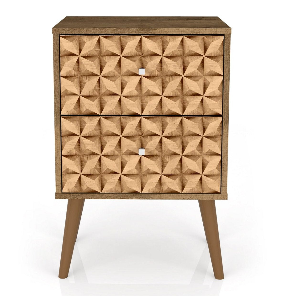 Manhattan Comfort Liberty Mid-Century Modern Nightstand with 2 Full Extension Drawers - Brown