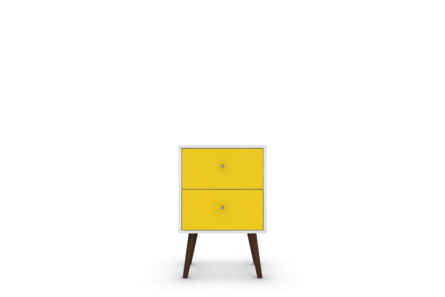 Manhattan Comfort Liberty Mid-Century Modern Nightstand with 2 Full Extension Drawers - White & Yellow