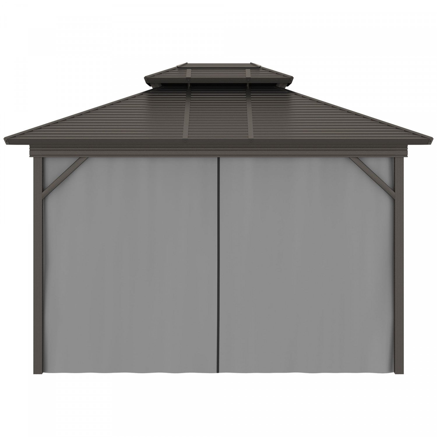 Outsunny 10' X 12' Hardtop Gazebo, Aluminum Frame Garden Sun Shelter With Double Tier Metal Roof, Mosquito Netting, Curtains, And Hanging Hook, Grey
