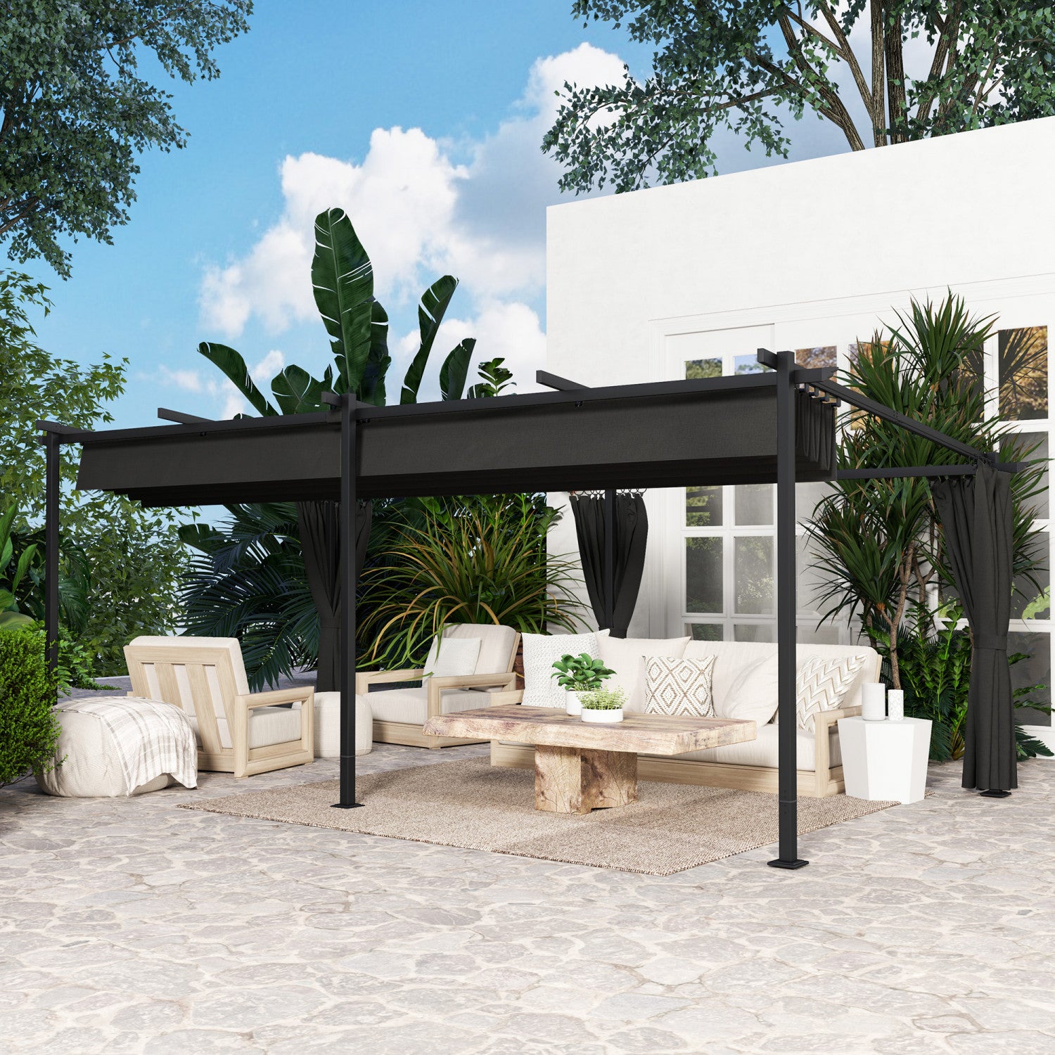 Outsunny 10' X 20' Metal Pergola With Retractable Canopy And Sidewalls