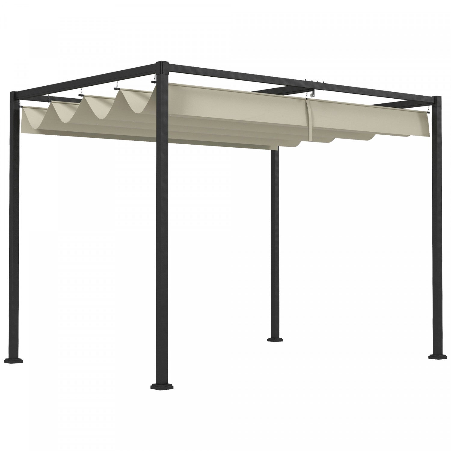 Outsunny 10' X 7' Patio Pergola With Retractable Canopy, Cream White