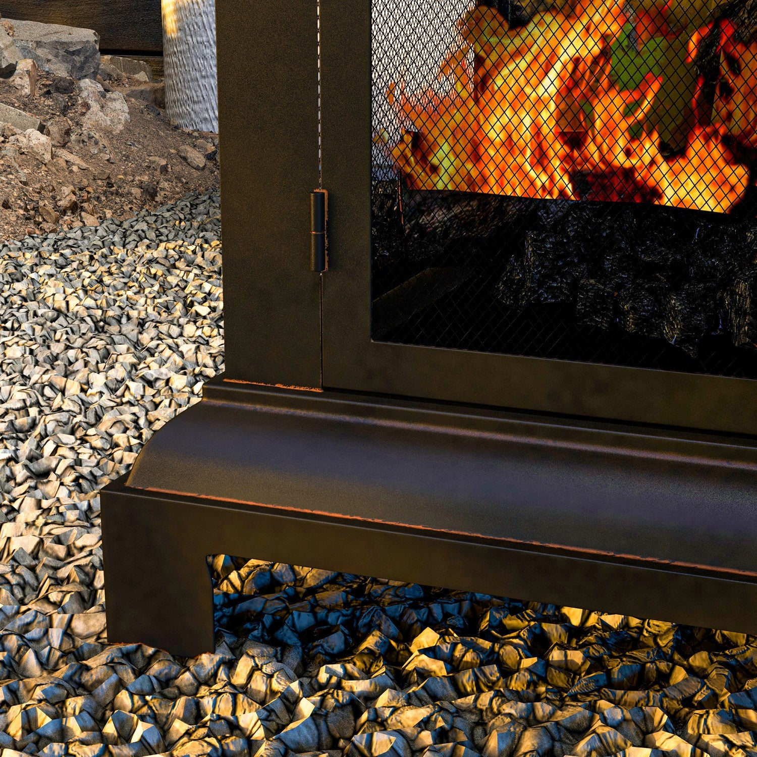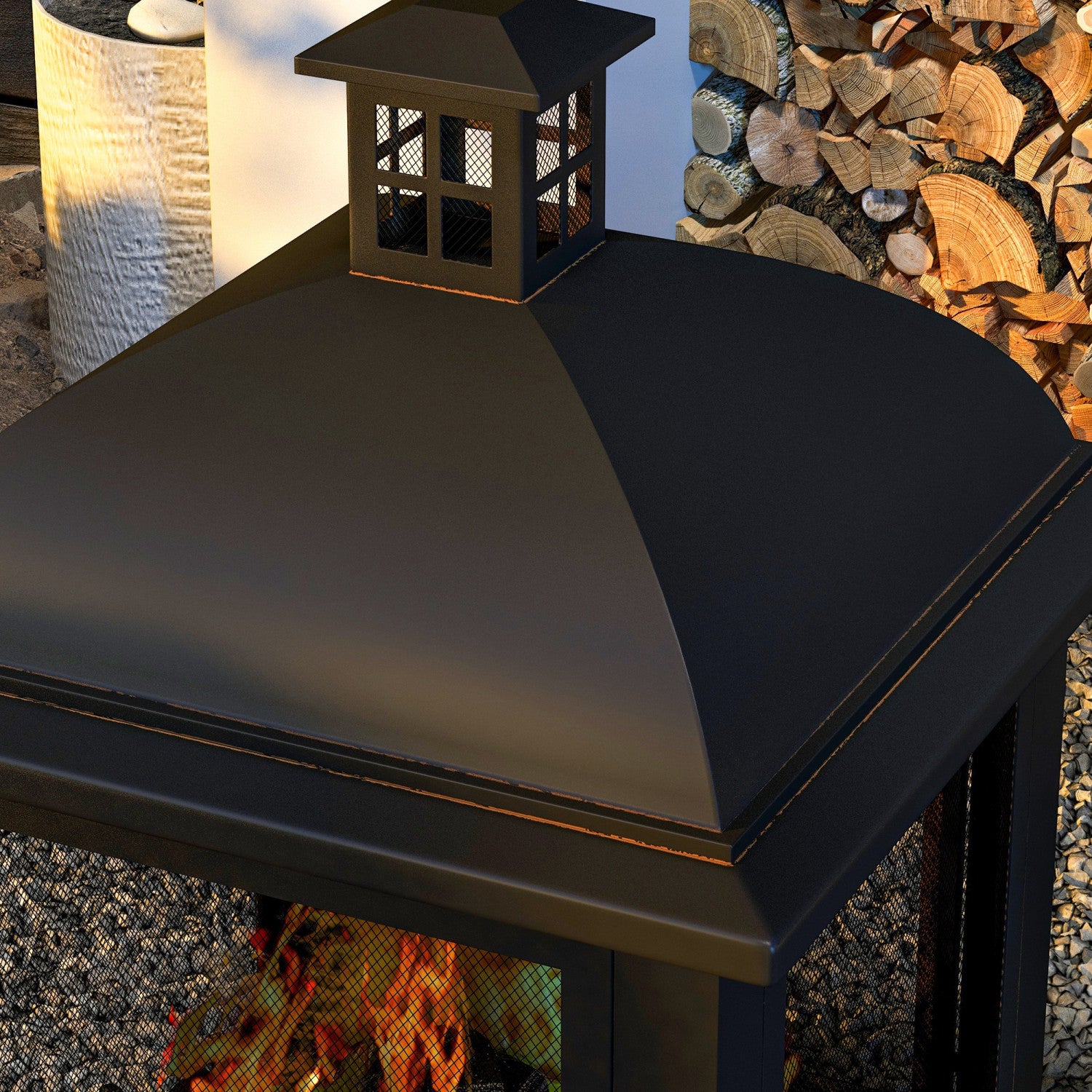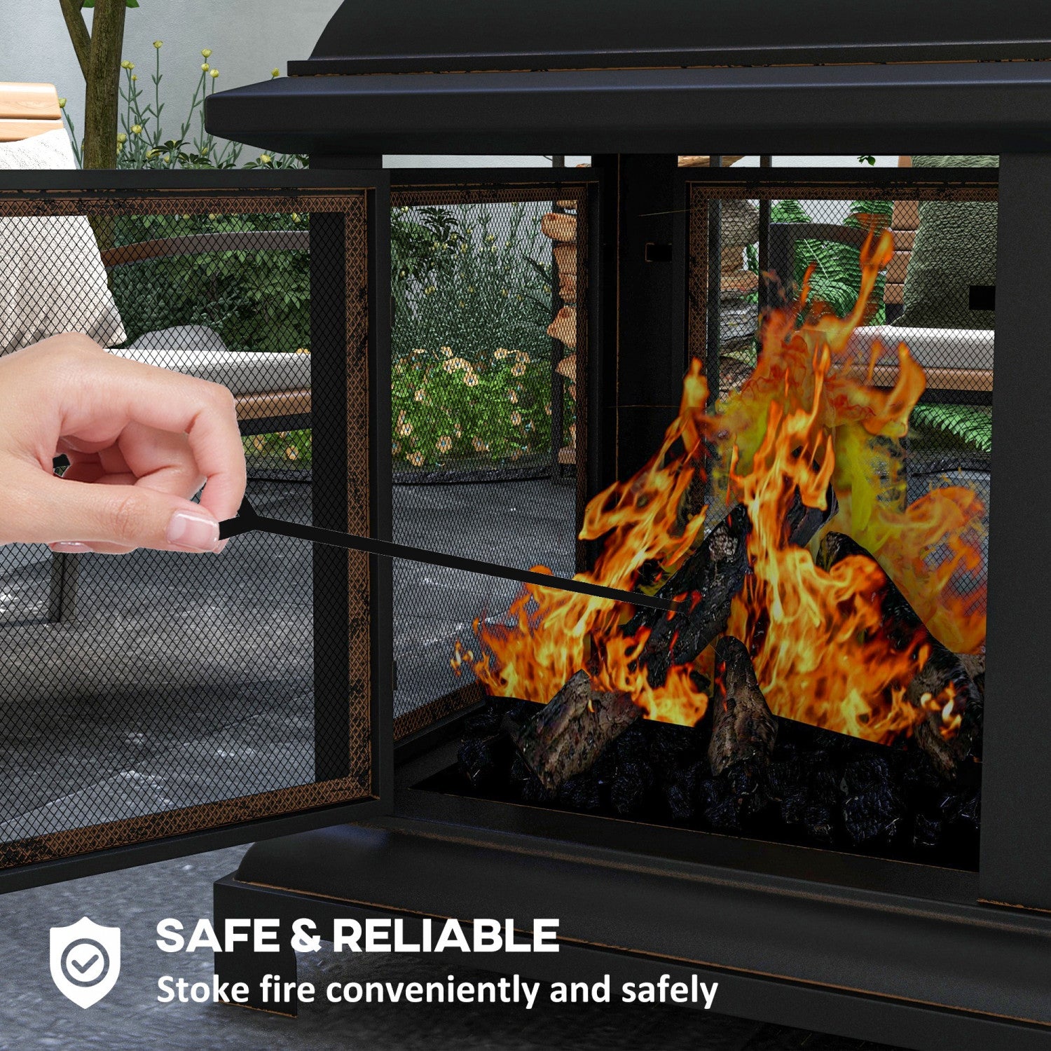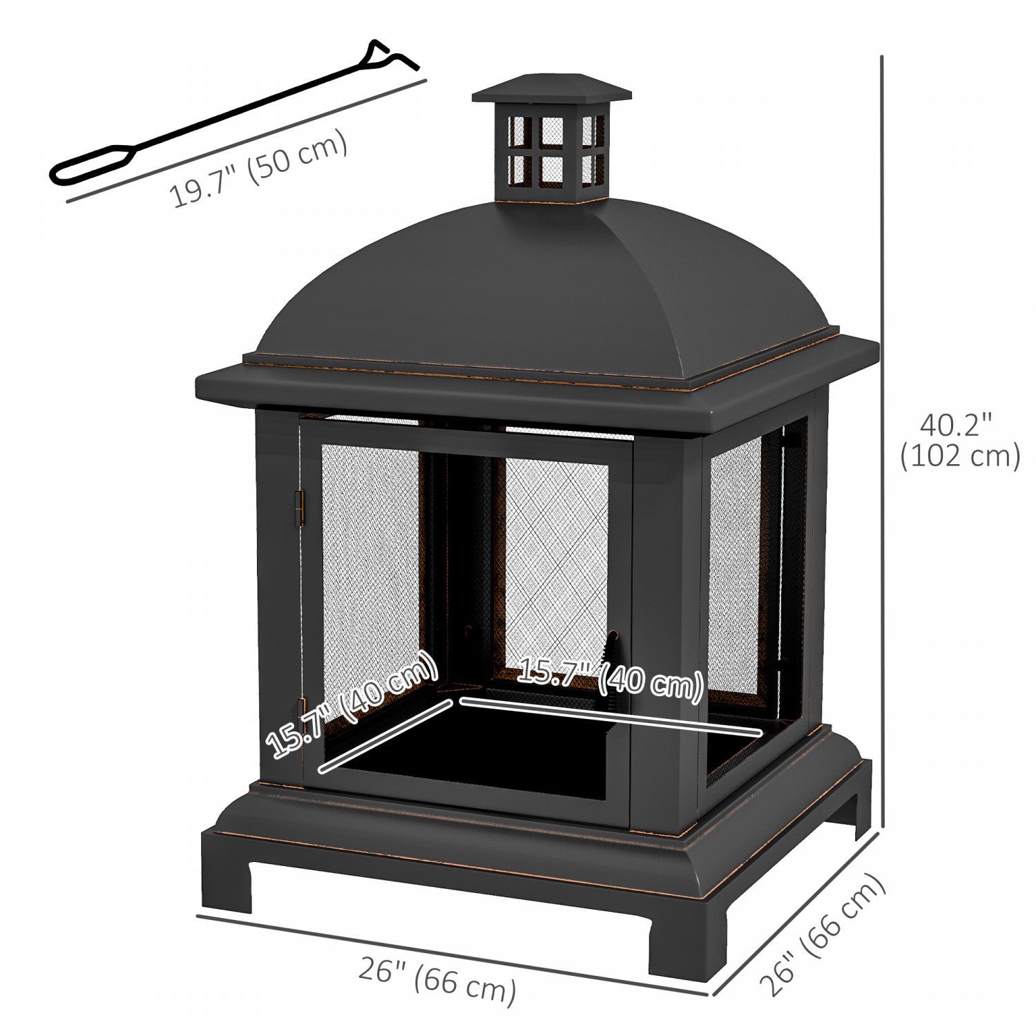 Outsunny 26" Fire Pit With Poker, Chimney Style Wood Burning Firepit, Black