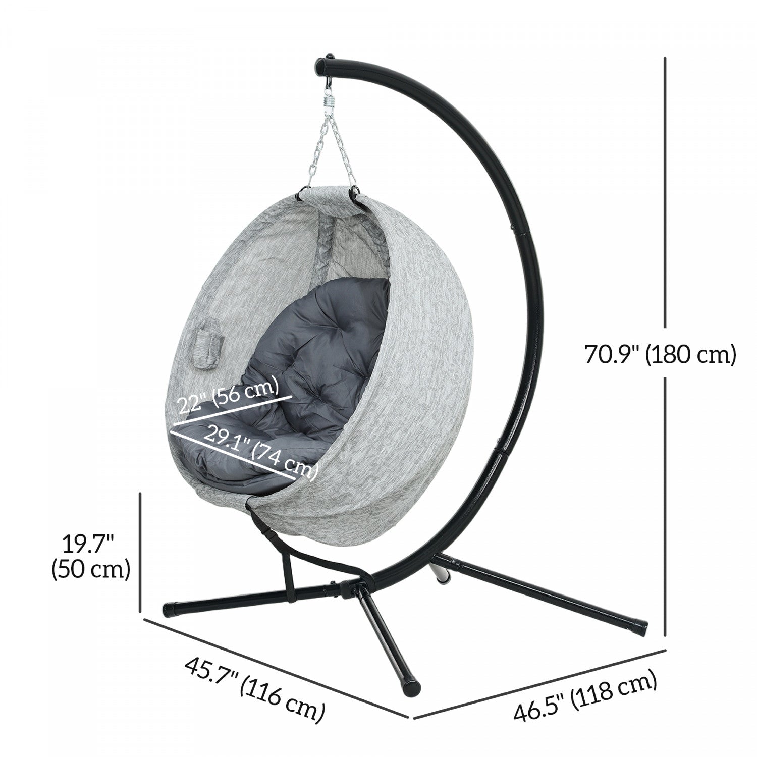 Outsunny Hanging Egg Chair With Folding Basket, Indoor Outdoor Swing Chair