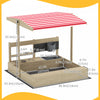 Outsunny Kids Sandbox with Cover, Wooden Sand Box with Adjustable Cover, Kitchen Playset Toys, Seat, Storage, Outdoor Sand Play for 3-7 Years Old, 45 x 43 x 43inch, Natural Wood