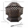 Outsunny Outdoor Fire Pit With Mesh Lid, Portable Wood Burning Firebowl With Poker For Patio, Backyard, Bronze