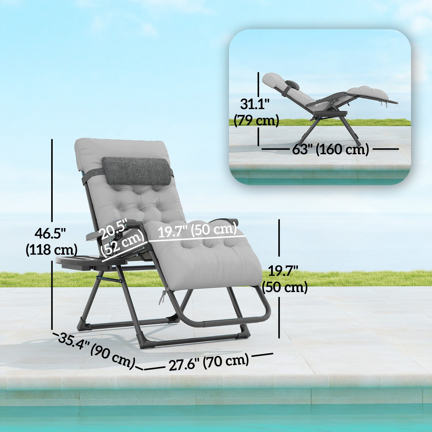 Outsunny Padded Zero Gravity Chair, Folding Recliner Chair, Grey