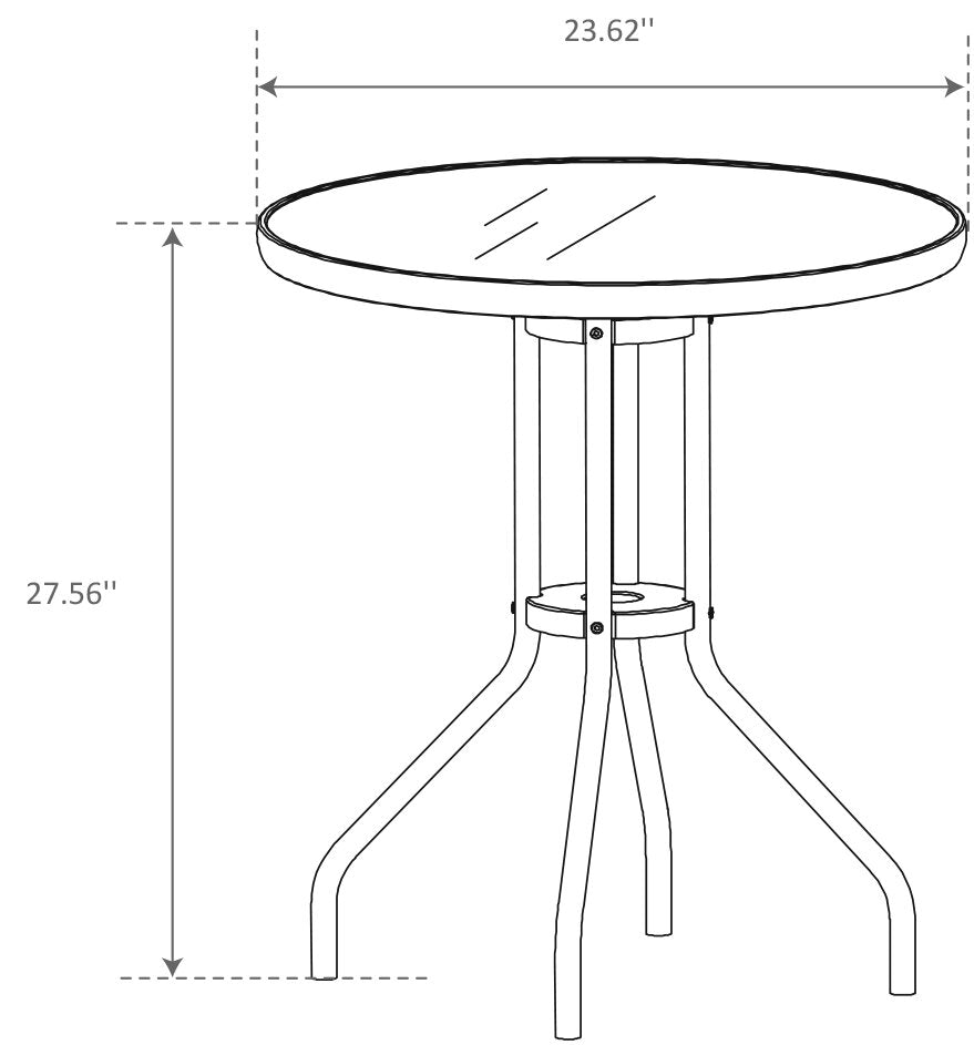 Paris Outdoor Patio Bistro Table - Round, Glass Table Top, Powder Coated Steel Frame - Black