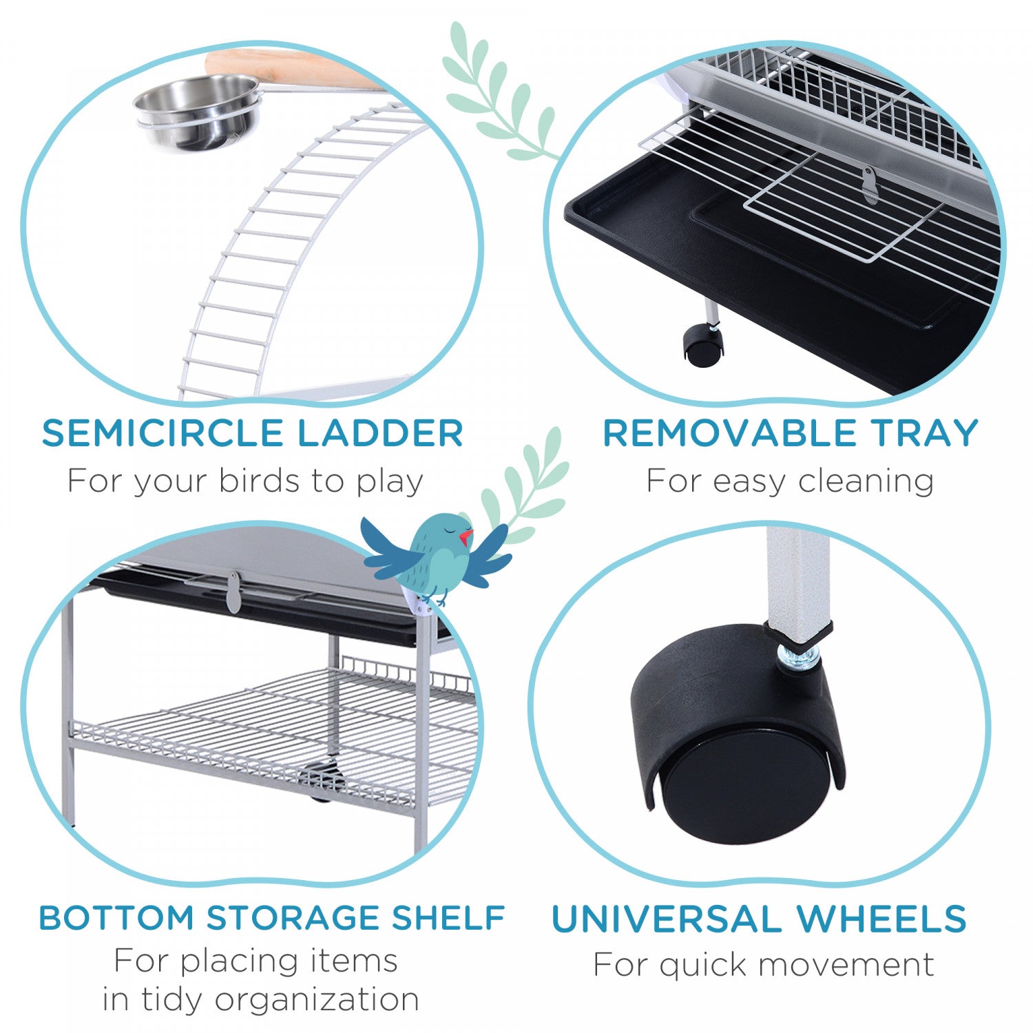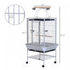 Pawhut 63.5" Bird Cage For Cockatiels, Conure, African Greys, Porcupines, Indian Ringnecks, Parrot Cage With Wheels, Bird Feeder Stand, Play Top House, Silver