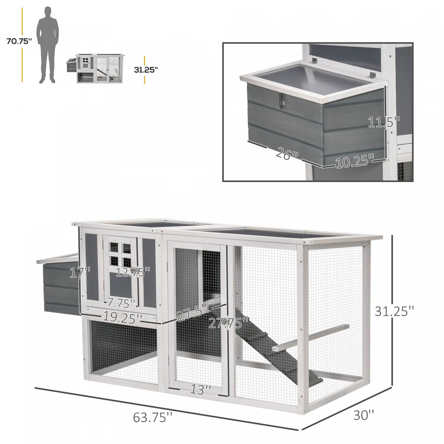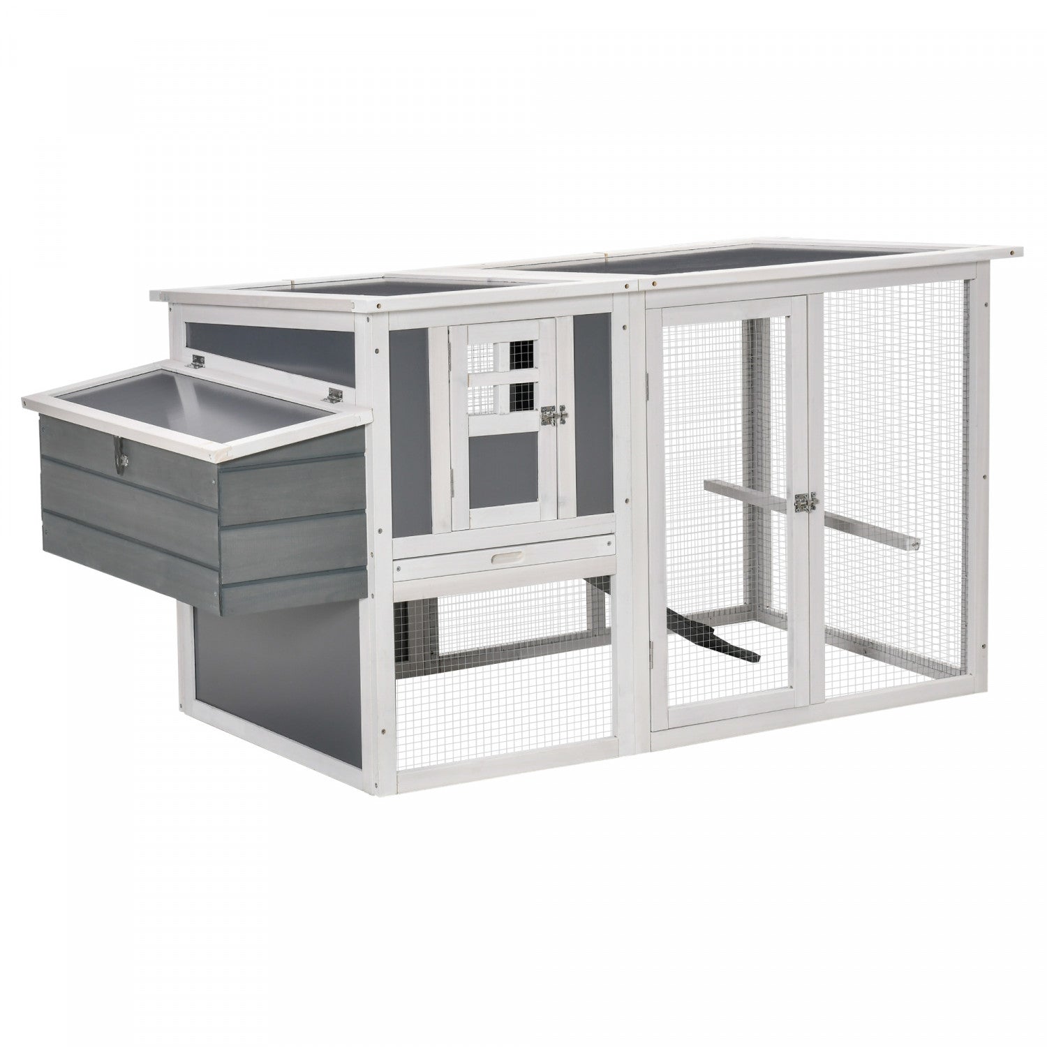 Pawhut 64" Wooden Chicken Coop, Outdoor Hen House Poultry Cage With Outdoor Run, Nesting Box, Removable Tray, Openable Roof And Lockable Doors,white And Grey