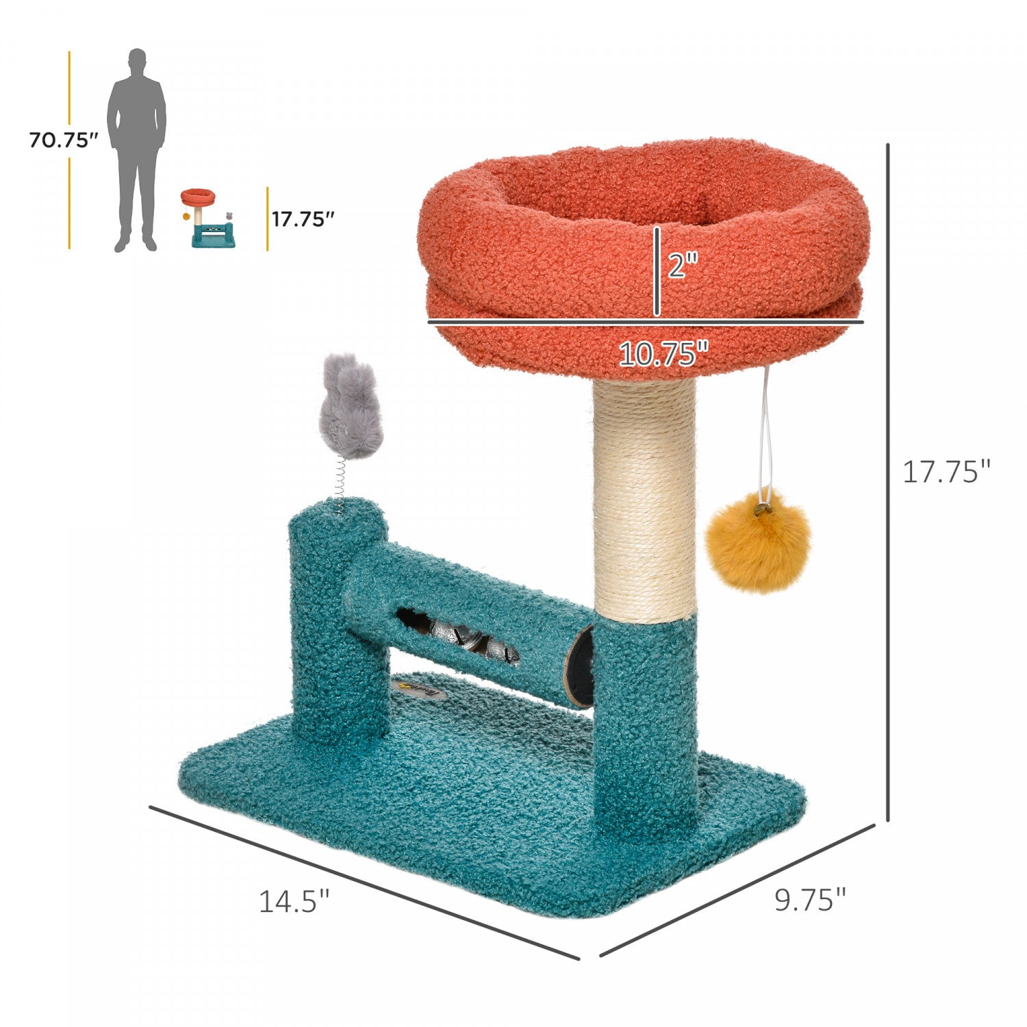 Pawhut Cat Tree With Removable Bed Scratching Post Interactive Kitten Toy Dangling Ball Spring Roller Bell Blue Orange