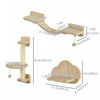 Pawhut Cat Wall Shelf With Scratching Post, Cloud-shaped Jumping Platform, Cat Wall Shelves For Relaxing, Sleeping, Climbing, Cat Wall With Soft Ladder And Play Balls, Beige