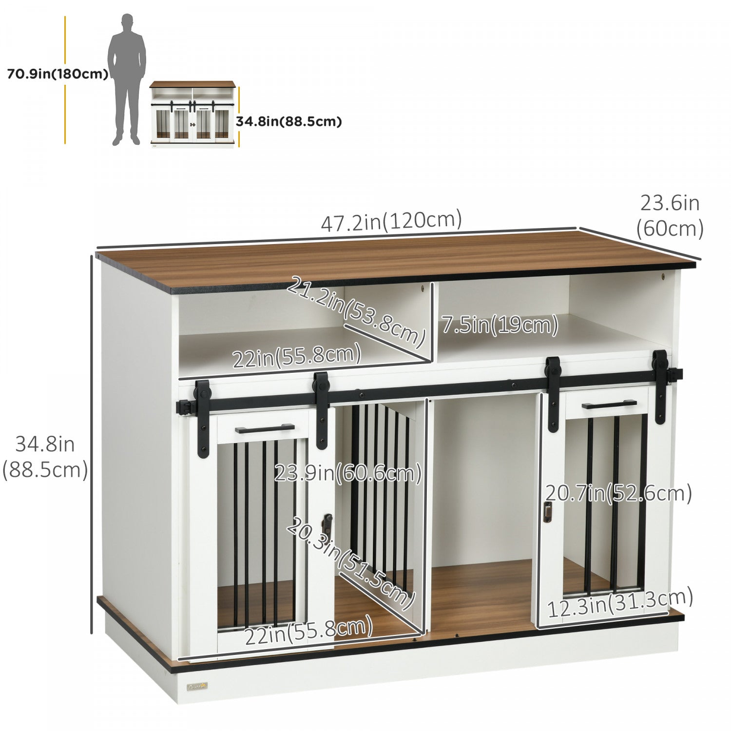 Pawhut Dog Crate Furniture For Large Dogs With Removable Divider, Dog Kennel For 2 Small Dogs With Storage, White