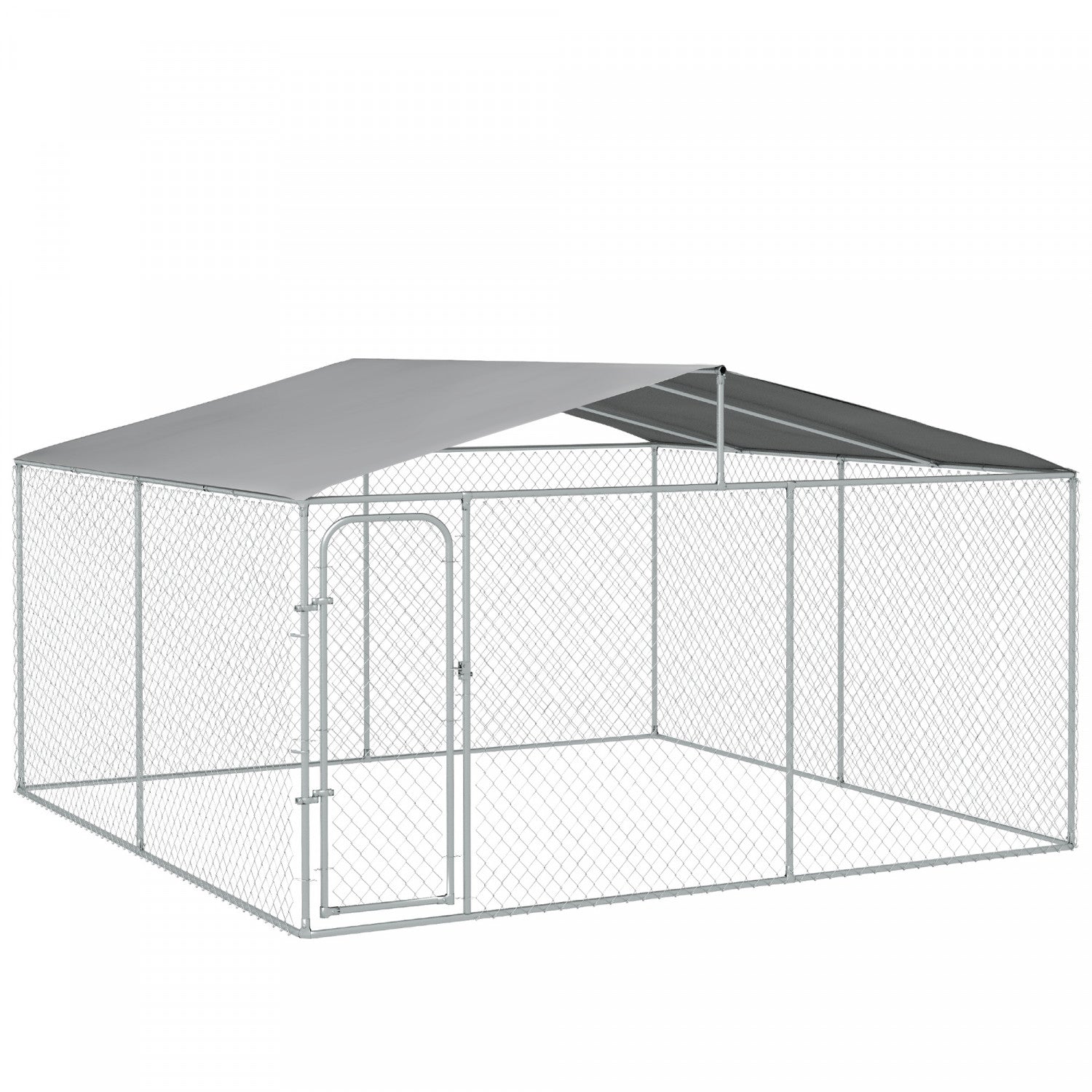 Pawhut Dog Kennel Outdoor Run Fence With Roof, Steel Lock, Mesh Sidewalls For Backyard & Patio, 13.1' X 13.1' X 7.5'
