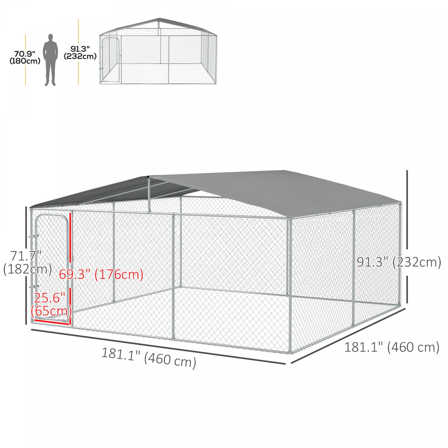 Pawhut Dog Kennel Outdoor Run Fence With Roof, Steel Lock, Mesh Sidewalls For Backyard & Patio, 15.1' X 15.1' X 7.5'
