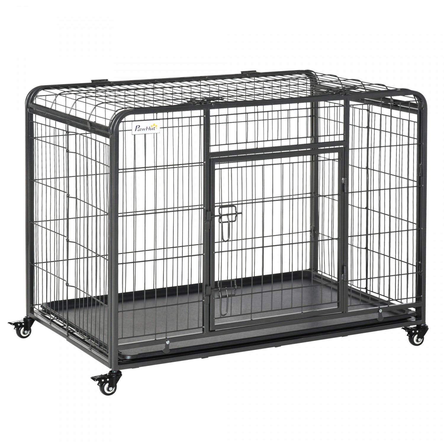 Pawhut Folding Heavy Duty Dog Crate Heavy Duty Cage For Large Sized Dogs With Double Doors, Lockable Wheels Tray, 43" X 28" X 31"
