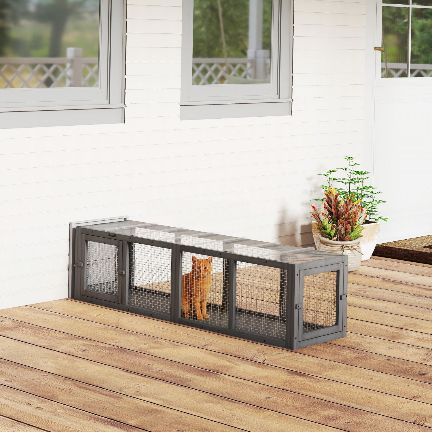 PawHut Outdoor Cat Tunnel, 60" Wooden Play Cat Enclosure, Extendable Pet Run with 3 Doors, for Indoor and Outdoor Use, for Kitty, Puppy, Grey