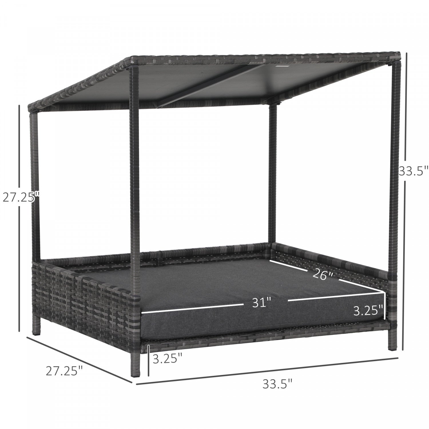 Pawhut Wicker Dog House Raised Rattan Dog Cat Bed For Indoor Outdoor Garden Patio Pet Sofa With Cushion Medium Sized Pet Grey