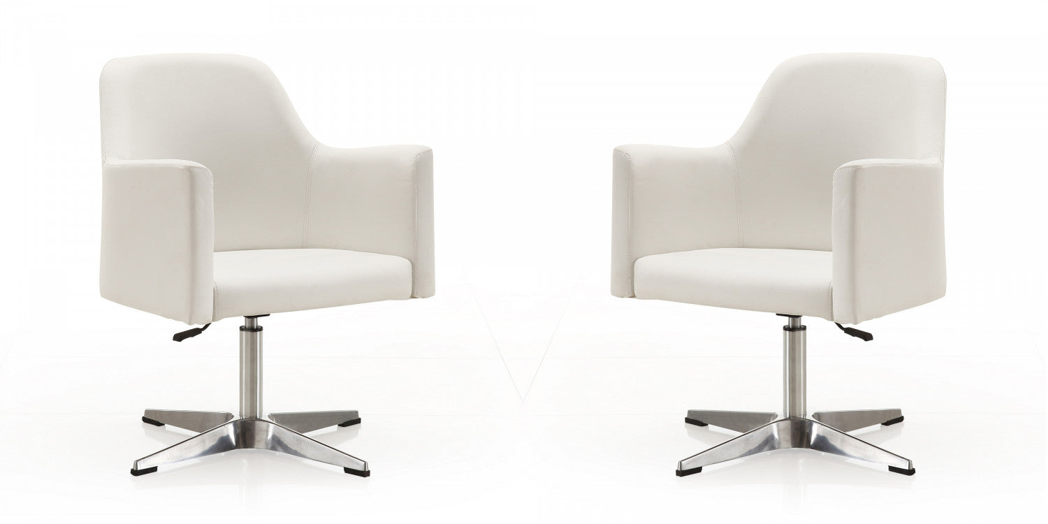 Pelo Modern Vegan Leather Swivel Lounge Chair in White - Set of 2 Accent Chair