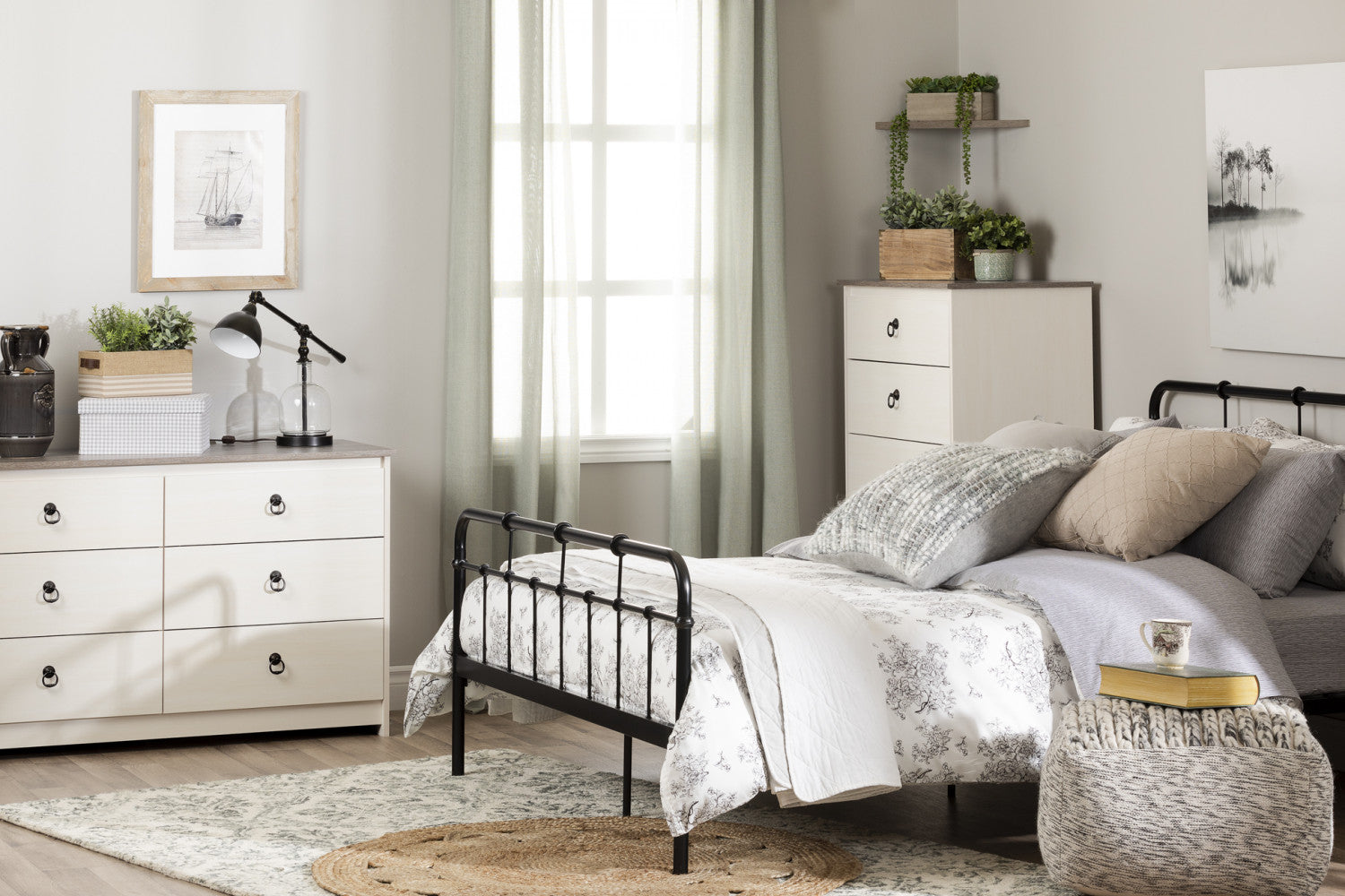 Plenny 6-Drawer Dresser White Wash and Weathered Oak - South Shore
