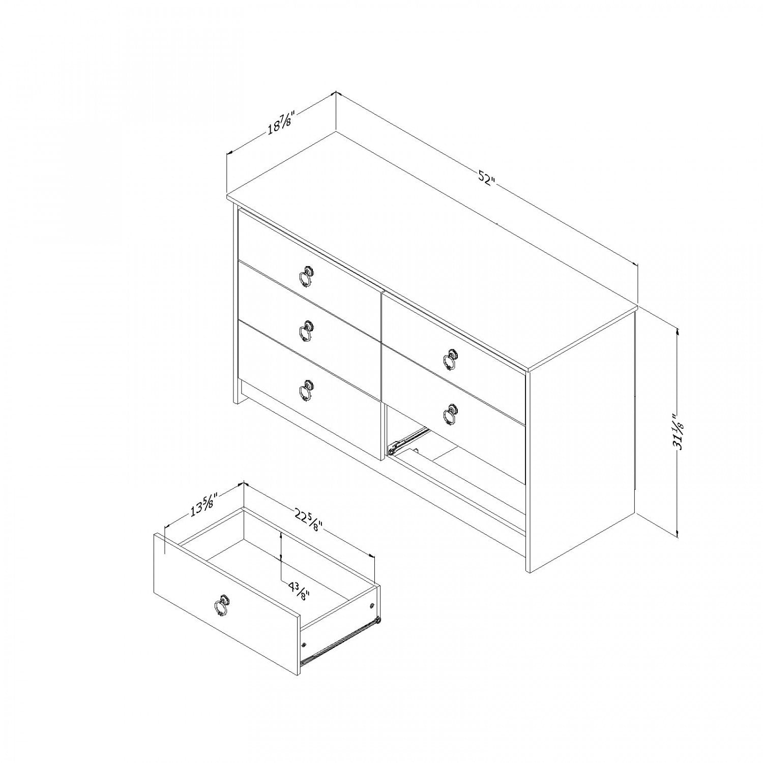 Width: 52" (132.1 cm) Height: 31.25" (79.4 cm) Depth: 18.75" (47.6 cm)